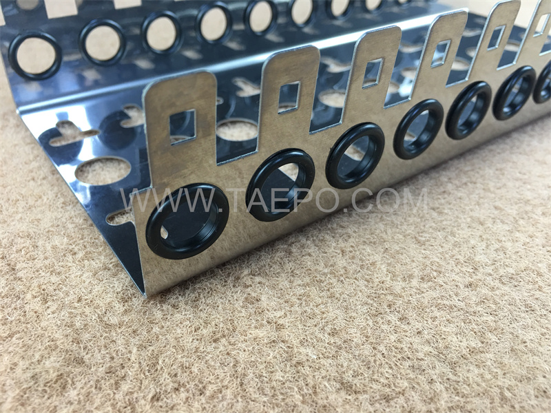 El bastidor trasero de 10 pares y 11 vías (TP-1212-10-11) se utiliza para instalar módulos LSA y cumplir funciones de cableado. Generalmente se monta en cajas de punto de distribución (DP). Forma parte de los accesorios para conectividad de cobre. Los cables de puente pueden introducirse desde ambos lados del módulo a través del anillo de goma negro, que protege los cables contra arañazos durante la inserción.