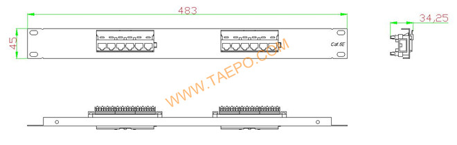 12 puertos panel de conexiones, CAT5E, RJ45, UTP, 19 ", 1U