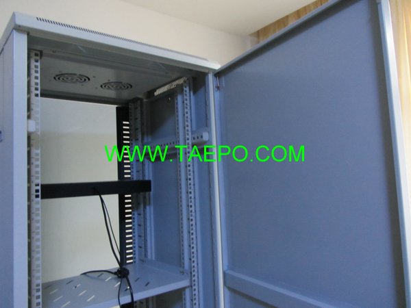 Free Standing datos gabinete, 600 (ancho) x 600 (d) x 2000 (H) mm, 42U, frente la puerta de cristal con Flat Panel de la puerta trasera no Meshed, puerta de acero, con 42 tornillos, 2 ventiladores, 2 estantes fijos, sin Power Strip
