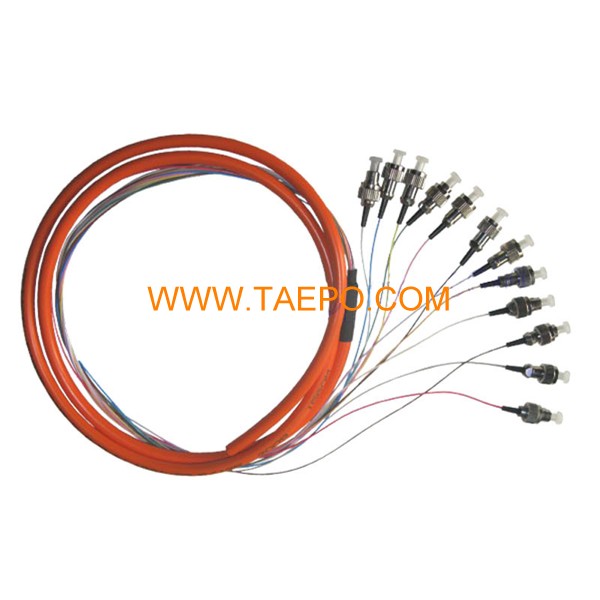 Fiber optic fanout pigtail, bunchy, multimode 50/125um OM2, 12 fibers, FC/UPC, 0.9mm, 1m